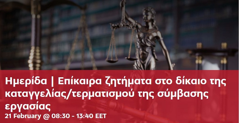 Ημερίδα: Επίκαιρα ζητήματα στο δίκαιο της καταγγελίας/τερματισμού της σύμβασης εργασίας