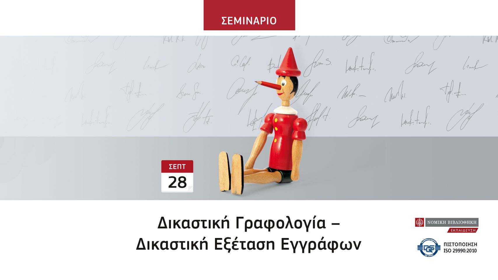 Η ΝΟΜΙΚΗ ΒΙΒΛΙΟΘΗΚΗ διοργανώνει το σεμινάριο ΔΙΚΑΣΤΙΚΗ ΓΡΑΦΟΛΟΓΙΑ – ΔΙΚΑΣΤΙΚΗ ΕΞΕΤΑΣΗ ΕΓΓΡΑΦΩΝ: «Βασικές αρχές και μέθοδοι διερεύνησης γνησιότητας γραφής, υπογραφής και εγγράφων» την Τρίτη 28 & Πέμπτη 30 Σεπτεμβρίου 2021 (17:00 – 21:00) με εισηγητή τον Νικόλαο Καλαντζή Ειδικό Δικαστικό Γραφολόγο, Μεταπτυχιακό Δικαστικής Γραφολογίας MSc, MFSSoc, FSSocDip, Μεταπτυχιακό Εγκληματολογικών Επιστημών PgD, Ερευνητής Staffordshire University. Το σεμινάριο θα πραγματοποιηθεί εξ αποστάσεως (live streaming ή On demand)