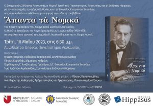 Eκδήλωση με αφορμή την έκδοση του βιβλίου “Άπαντα τα Νομικά” του πρώην Προέδρου του Δικηγορικού Συλλόγου Λευκωσίας, Κυθρεώτη Δικηγόρου και Λογοτέχνη Αχιλλέως Κ. Αιμιλιανίδη (1903-1978)