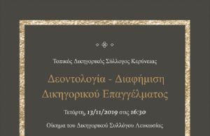 Posted In ΕΚΔΗΛΩΣΕΙΣ, ΕΝΗΜΕΡΩΣΗTagged In Δεοντολογία, ΔΙΑΛΕΞΗ, Δικηγορικός Σύλλογος Κερύνειας, ΔΙΚΗΓΟΡΟΙ